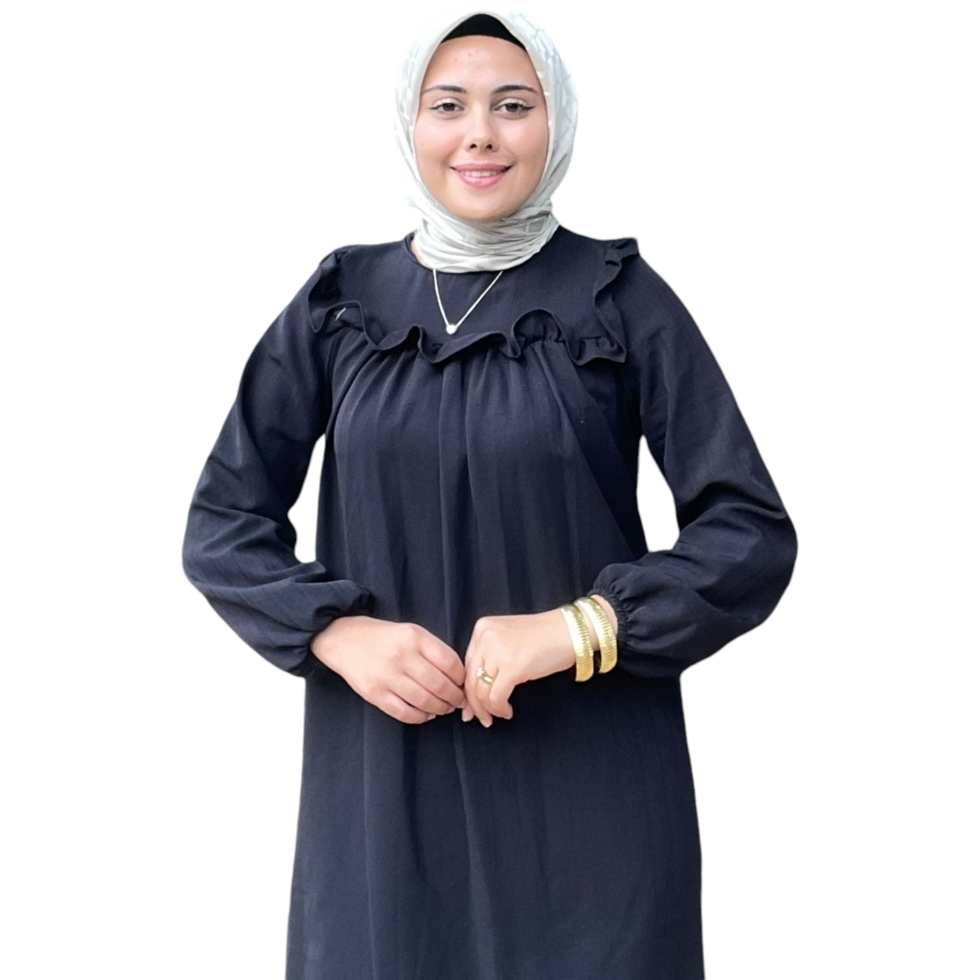 Göğüs Kısmı Büzgülü Tunik Siyah