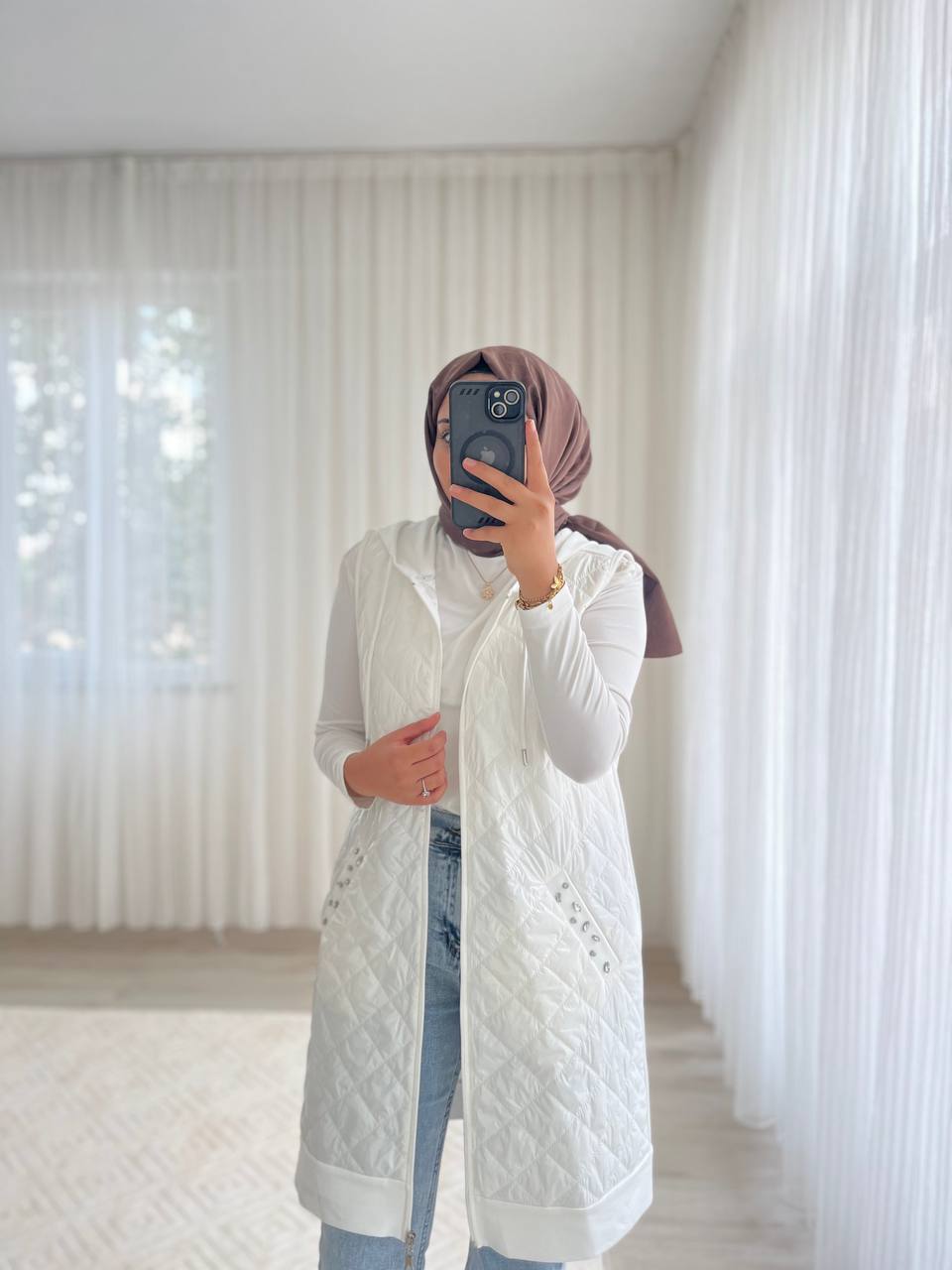 Taşlı Yelek Beyaz